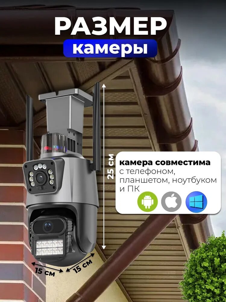 Уличная Wi-Fi камера видеонаблюдения 8 Мп Full HD 4K Камера двойная 8мп два объектива, черная: сравнение цен, характеристики, фото, актуальное наличие и цены.