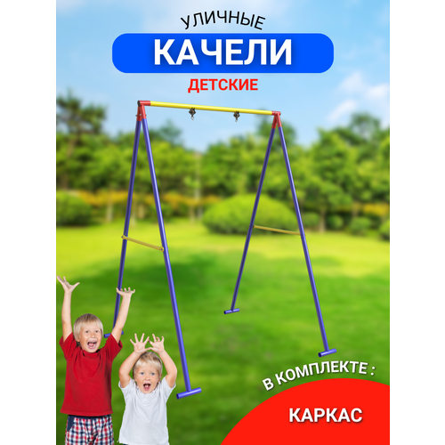 Уличный качели несомненно станут украшением Вашего участка и любимым местом игр для ваших детей. Способ установки: Основания стоек бетонируются. Цветное исполнение: Синий-желтый детские качели должны быть В каждом дворе! Качели – стандартный элемент детского спортивного комплекса. Пользу качелей для ребенка сложно преувеличить: