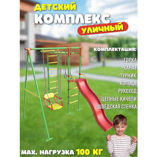 Уличный детский игровой комплекс – лучшее решение для дачи, дворовой территории и частной зоны. Комплекс легко устанавливается в стойки цементируемых «стаканов». Комплектация по-умолчанию: