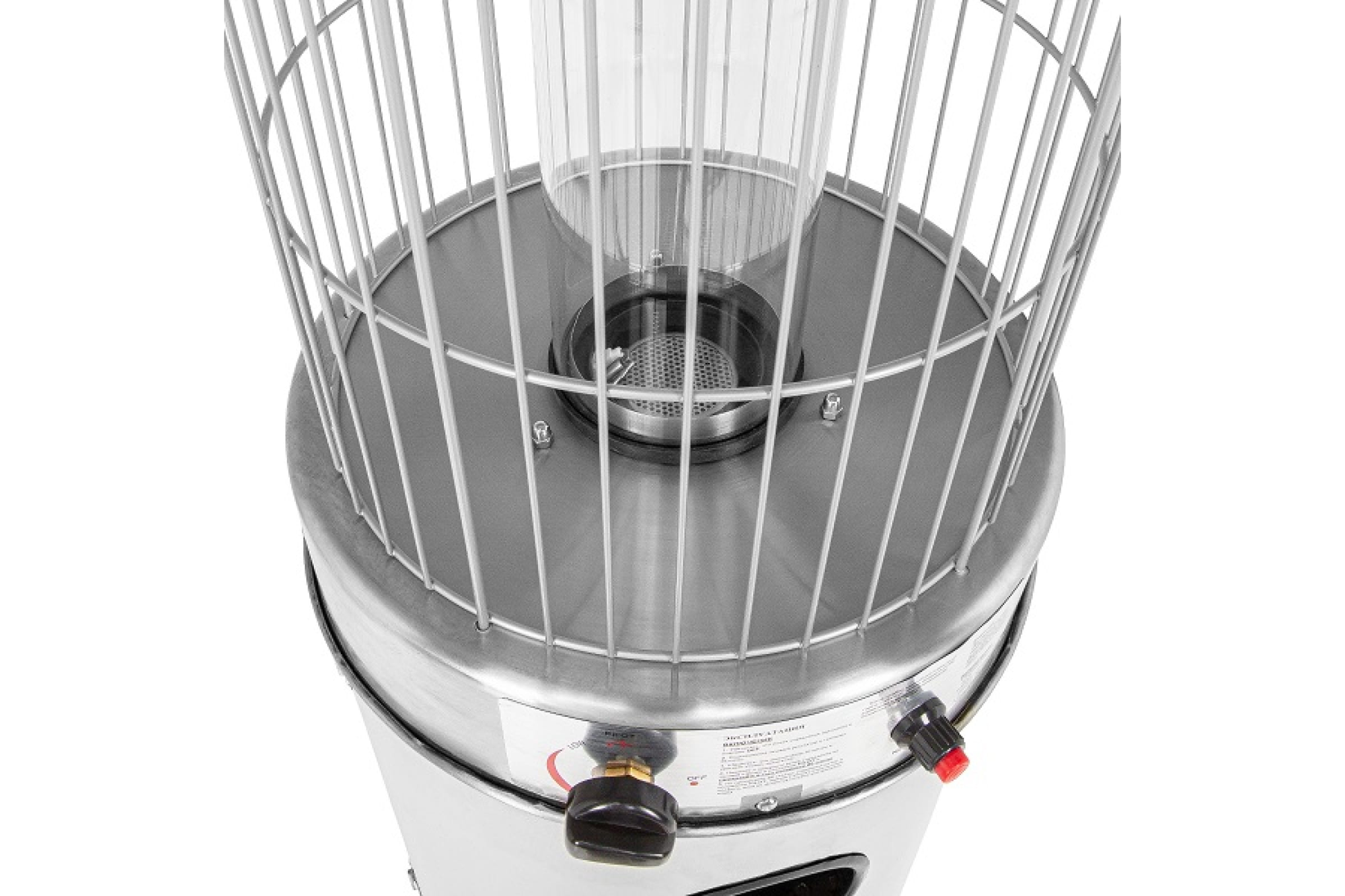 Установленный на улице напольный газовый обогреватель согревает вокруг себя пространство до 5 метров в диаметре. А благодаря современному импульсному поджигу работающему от батарейки и терморегулятору для изменения мощности работающего обогревателя от 5 до 13 кВт установить комфортную температуру вокруг него легко и просто.
