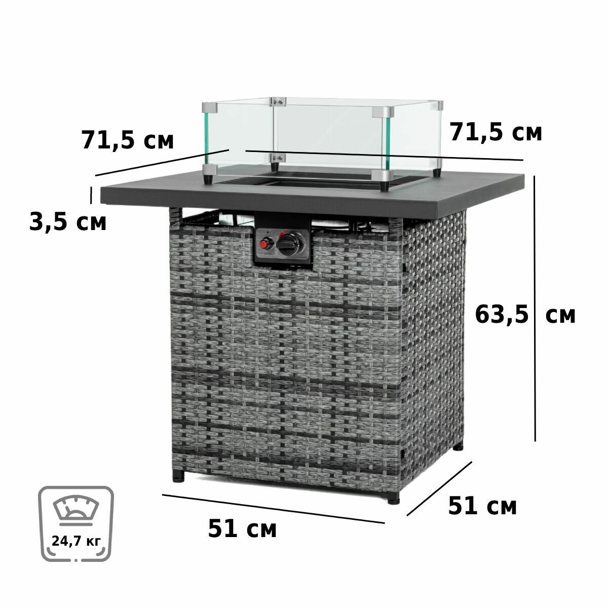 • Высота: 63,5 м • Вес нетто: 24,7 кг • Мощность: 5-13 кВт • Диаметр обогреваемой территории: 8-15 м2 • Давление газа: 28-40 мбар • Расход газа: 0,85-1,2 кг/ч • Топливо: сжиженный пропан-бутан • Тип розжига: импульсный • Цвет: бежево-коричневый • С квадратным стеклом • Размер коробки: 87x87x22 см • Вес брутто: 28,2 кг • Производитель: AESTO • Страна: Китай