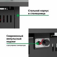 Подходит под любой газовый баллон до 9,2 л включительно (высота 49 см, диаметр 32 см). Газовый баллон в комплект не входит, регулятор и шланг – входят.