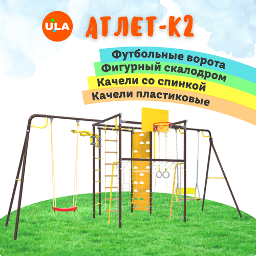 Уличный комплекс Атлет-К2 Rokids, цвет шоколад, качели со спинкой и пластиковые: сравнение цен, характеристики, фото, актуальное наличие и цены.