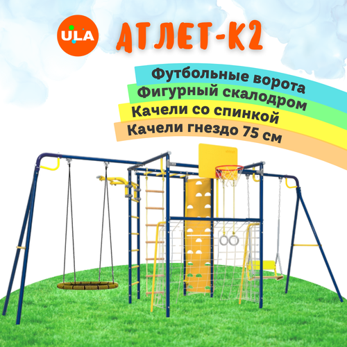Купить Уличный комплекс Атлет-К2 Rokids, цвет ультрамарин, качели со спинкой и гнездо 75 см с доставкой по всей России.