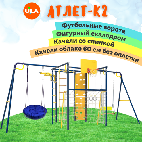 Купить Уличный комплекс Атлет-К2 Rokids, цвет ультрамарин, качели со спинкой и Облако 60 см без оплетки с доставкой по всей России.