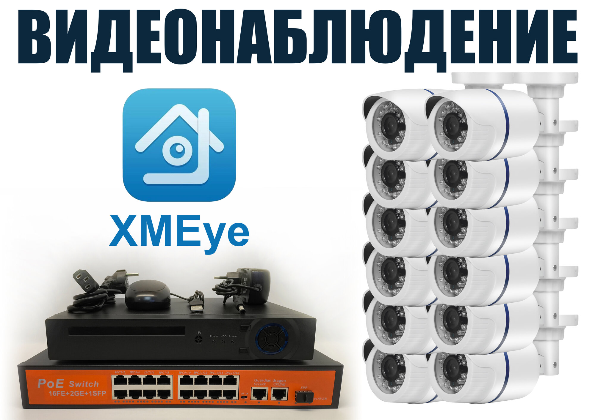 Уличный комплект видеонаблюдения IP POE 4мП. 12 камер (KIT12IPPOE100W4MP): сравнение цен, характеристики, фото, актуальное наличие и цены.