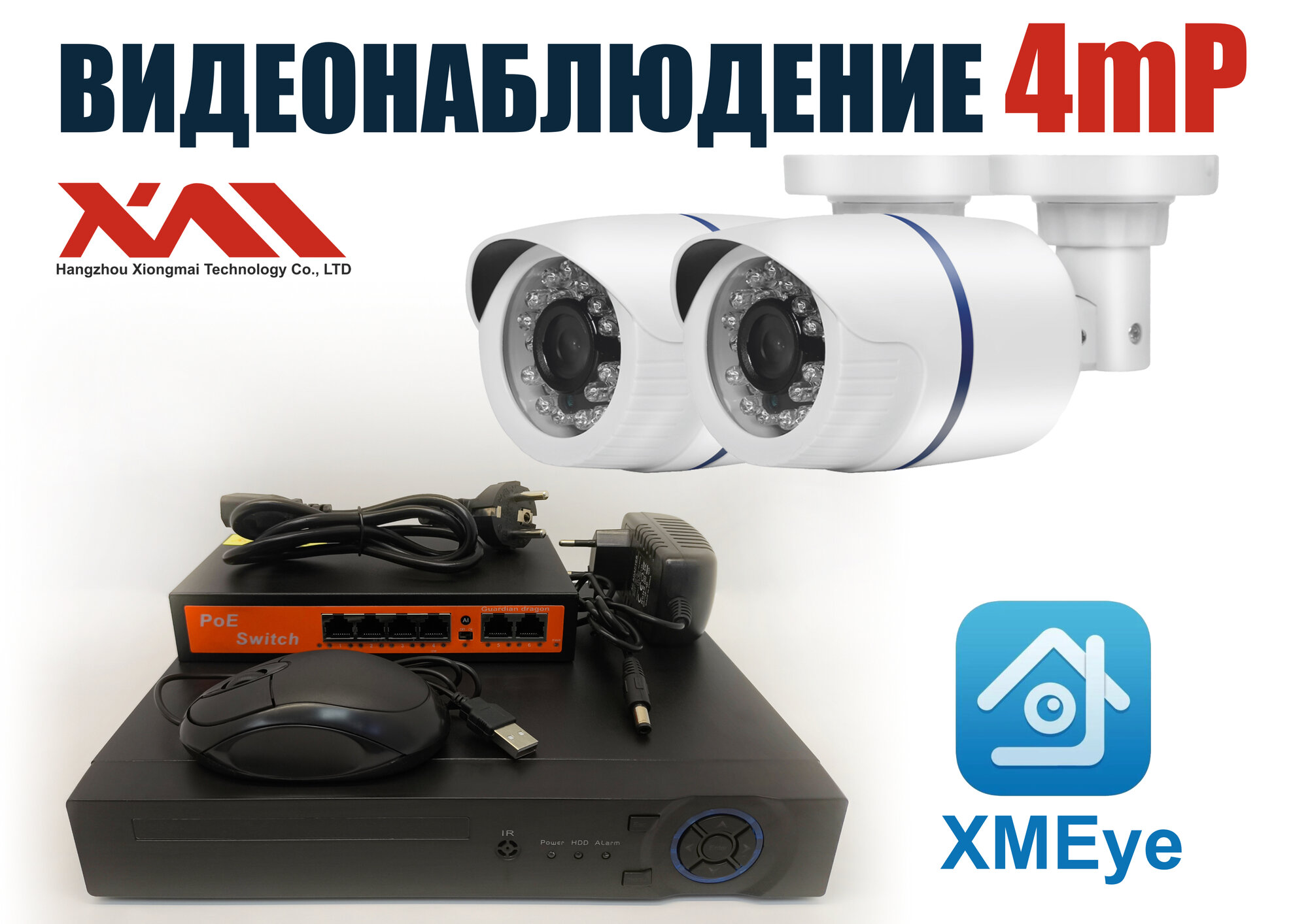 Уличный комплект видеонаблюдения IP POE 4мП. 2 камеры (KIT2IPPOE100W4MP): сравнение цен, характеристики, фото, актуальное наличие и цены.