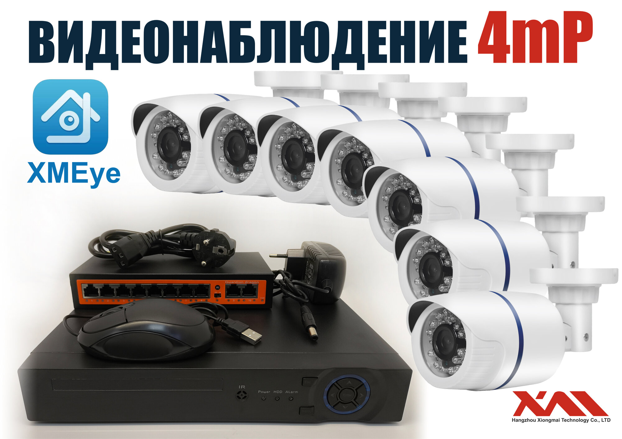 Уличный комплект видеонаблюдения IP POE 4мП. 7 камер (KIT7IPPOE100W4MP): сравнение цен, характеристики, фото, актуальное наличие и цены.