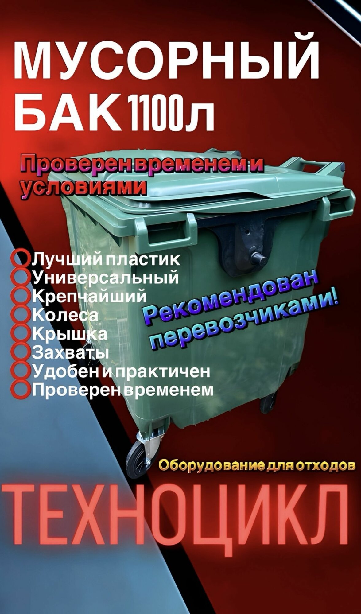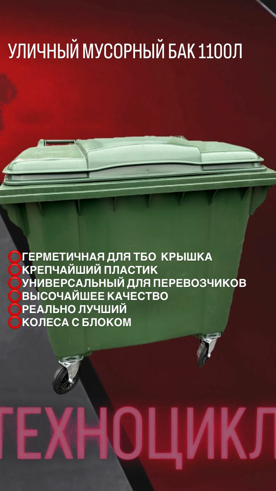 Мусорный бак/Контейнер для мусора 1100л+комплект салфеток универсальный бак с крышкой и колесами