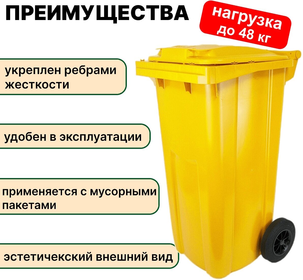 Мусорный бак Усиленный, контейнер для мусора 120 л, с крышкой на колесах, желтый: сравнение цен, характеристики, фото, актуальное наличие и цены.
