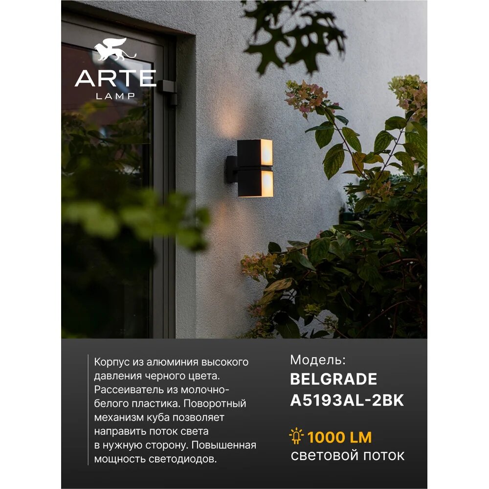 Уличный настенный светильник ARTE LAMP BELGRADE A5193AL-2BK: сравнение цен, характеристики, фото, актуальное наличие и цены.