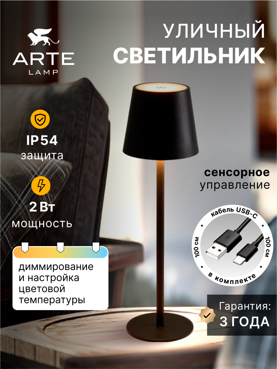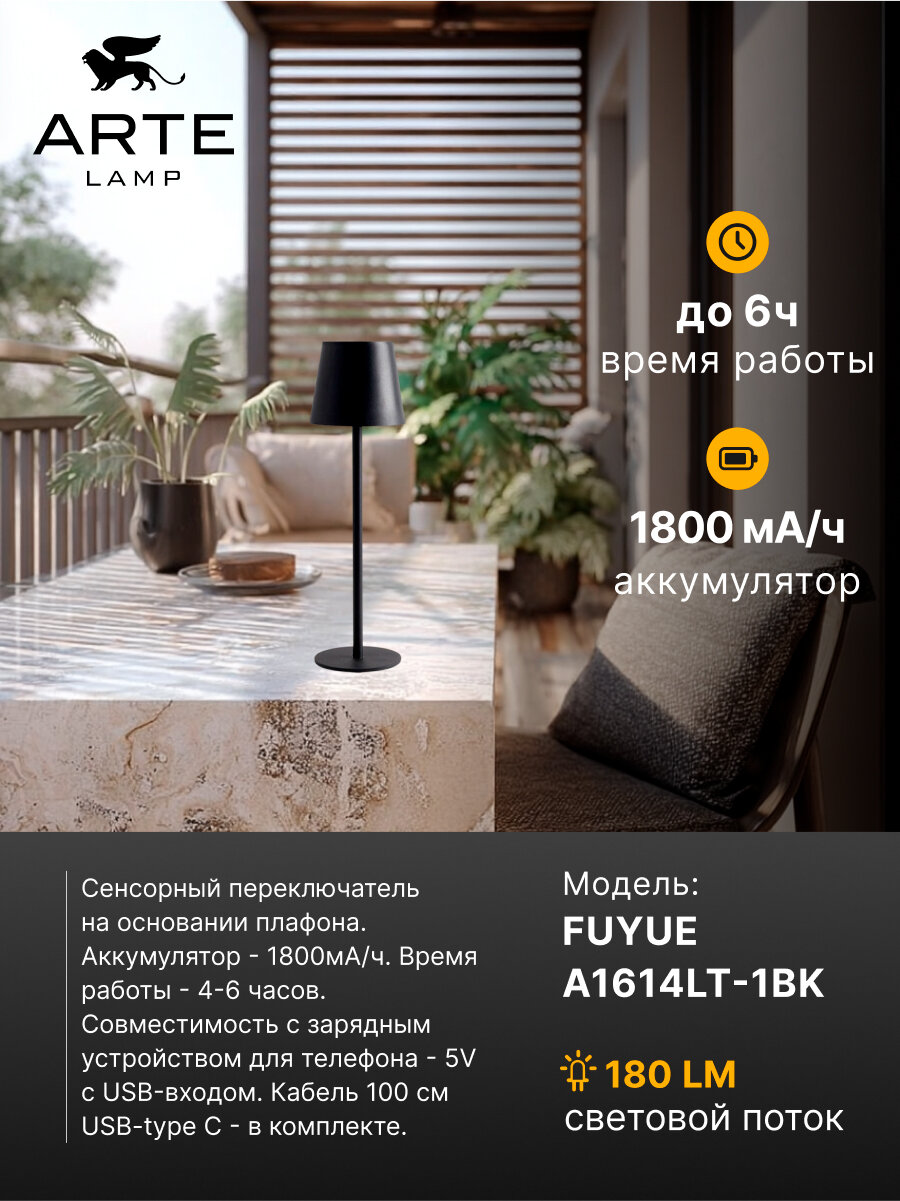 Уличный настольный светильник Arte Lamp FUYUE A1614LT-1BK черный LED чёрный: сравнение цен, характеристики, фото, актуальное наличие и цены.