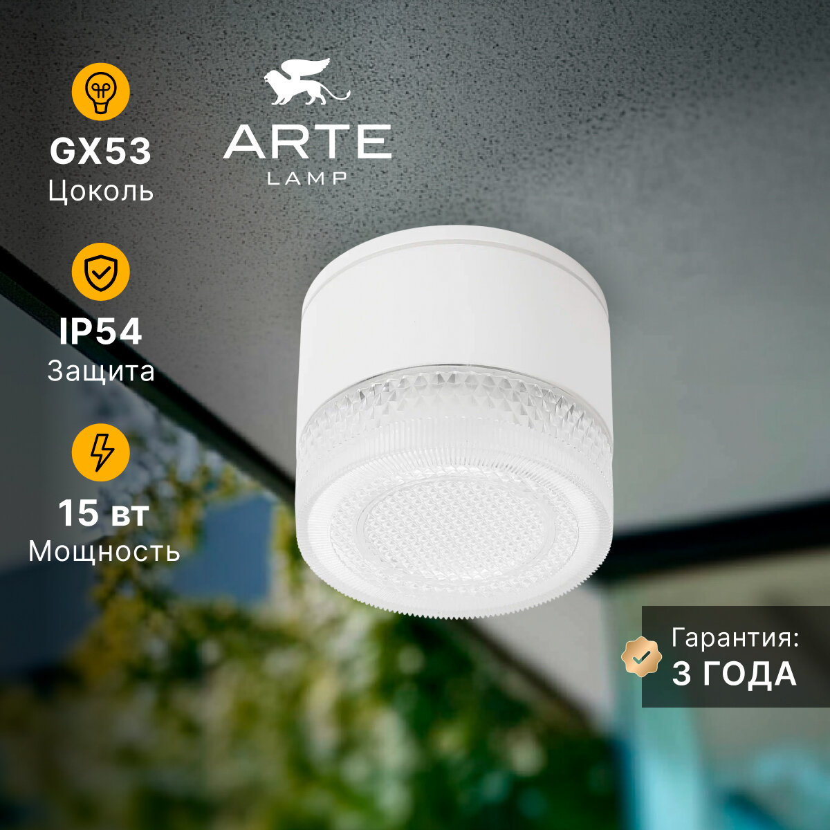 Уличный потолочный светильник Arte Lamp PIAUTOS A1926PF-1WH GX53 белый: сравнение цен, характеристики, фото, актуальное наличие и цены.