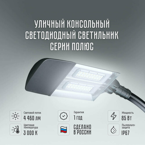 Уличный светильник фонарь консольный светодиодный Полюс 220В 85вт 3000 К С-01-SSU освещение для дачи, придомовой территории, двора, сада, улиц, спортивных площадок: сравнение цен, характеристики, фото, актуальное наличие и цены.