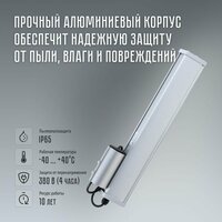 4. Герметичный корпус. Изготовленный из прочного анодированного алюминия, корпус светильника защищает внутренние компоненты от воздействия внешней среды, включая дождь, снег и пыль.