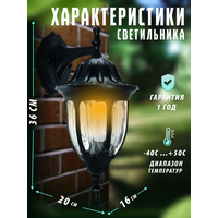 Основные характеристики:▪ Источник света: ЛОН/КЛЛ/LED ▪ Напряжение питания: 230В 50Гц ▪ Тип лампы: 60/А/Е27 ▪ Тип патрона: E27 ▪ Класс электрозащиты: II ▪ Степень защиты: IP44 ▪ Макс. мощность лампы накаливания (Вт): 60 ▪ Цвет корпуса: черный▪ Размеры светильника (мм): 365х205х165▪ Материал корпуса: металл+стекло▪ Гарантия (мес): 12