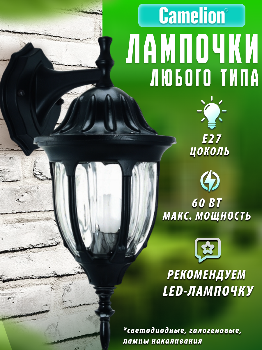Ландшафтный настенный светильник 10529 Camelion 4502 цвет черный.