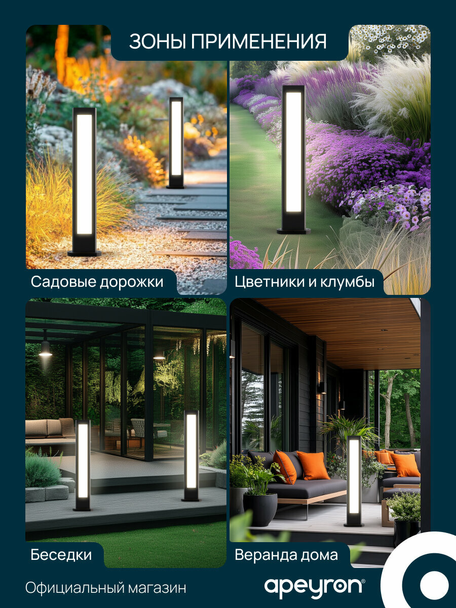 Уличный светодиодный напольный светильник Shadow Apeyron 31-11 с теплым белым свечением 3000К / 840Лм/ 12Вт / 230В / IP54, 100х50х600мм, чёрный: сравнение цен, характеристики, фото, актуальное наличие и цены.