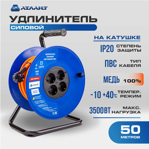 Уличный удлинитель силовой 50 метров кабель ПВС 2х1,5 (б/з) 4 розетки 16А 3500Вт, на стальной раме и на катушке для строительных электроинструментов: сравнение цен, характеристики, фото, актуальное наличие и цены.