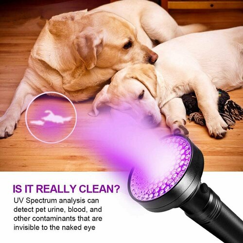 Компактный, мощный и долговечный ультрафиолетовый светодиодный фонарик детектор поможет при уходе за домашними животными.