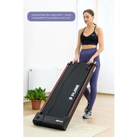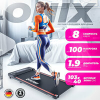 PLANK ONIX – ультратонкая беговая дорожка без поручней, сделана из прочных и легких композитных материалов. Легко помещается под диваном, за дверью или даже в шкафу. Для легкого перемещения имеет транспортировочные ролики. На дисплей выводятся все основные параметры тренировки: скорость, расход калорий, пройденная дистанция и время. Беговая дорожка управляется с помощью беспроводного пульта дистанционного управления, который идет в комплекте. Для комфортных занятий дорожка оснащена Bluetooth и динамиками, это позволит наслаждаться любимой музыкой во время тренировки. Проверенный двигатель Johnson Electric, мощностью 1.5 л. с, легко разгоняет дорожку от 1 до 8 км/ч. и способен нести нагрузку до 100 кг. Система амортизации состоит из нескольких эластомеров, а дека, изготовлена из специального демпфирующего материала, что снижает нагрузку на суставы до 30%. Беговое полотно имеет размер 38х103 см. Ультракомпактная беговая дорожка PLANK ONIX поставляется полностью в собранном виде, ее необходимо просто достать из коробки, привести в рабочее положение, подключить к розетке и можно сразу приступать к тренировке. Регулярные занятия на беговой дорожке, положительно влияют на физическое здоровье, укрепляют сердечно-сосудистую и нервную системы, укрепляют тонус тела, помогают бороться с лишним весом и существенно снижают проявления целлюлита.