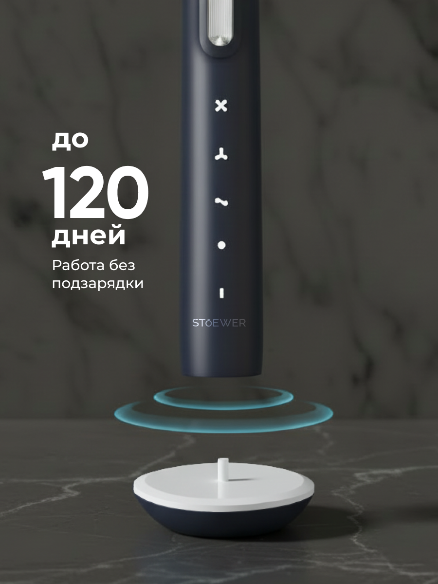 SoniBrush M4 - оптимальный выбор для эффективной и комфортной чистки зубов с учетом индивидуальных предпочтений. Stoewer SoniBrush M4 сохраняет красивую улыбку и здоровье полости рта благодаря мощному мотору, совершающему 38 000 вибраций в минуту. Это позволяет эффективно и быстро удалять зубной налет и остатки пищи, обеспечивая глубокую чистку зубов и десен. (не исправлять)