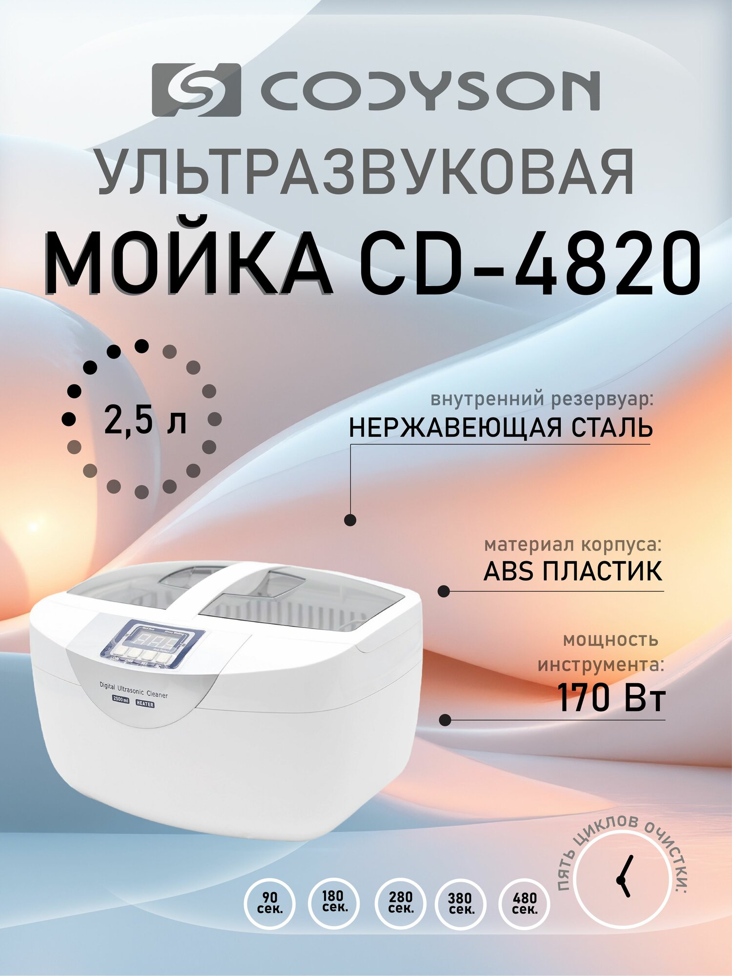 Ультразвуковая мойка Codyson CD-4820 объем 2500 мл. ванна с подогревом для очистки инструментов: сравнение цен, характеристики, фото, актуальное наличие и цены.