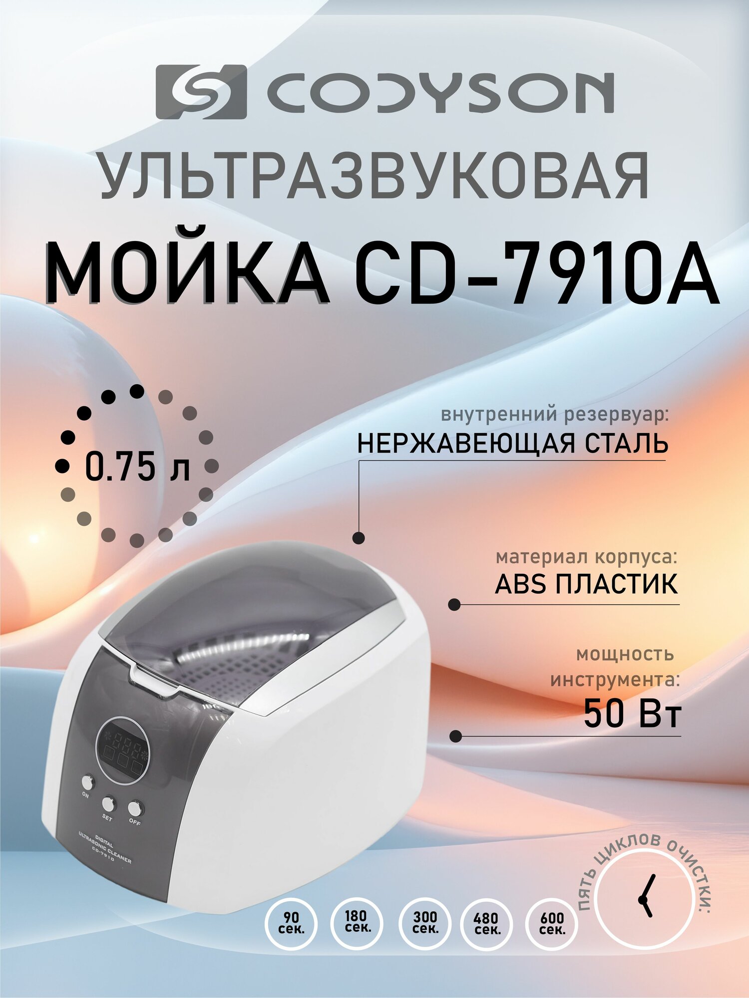 Ультразвуковая мойка Codyson CD-7910A, ванна для очистки инструментов объемом 750 мл: сравнение цен, характеристики, фото, актуальное наличие и цены.