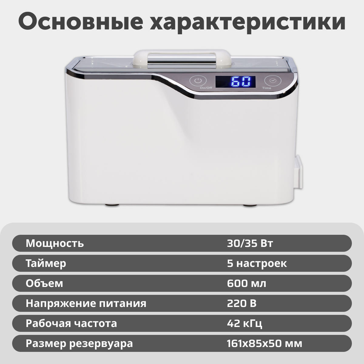 Ультразвуковая ванна Codyson CDS-100 с таймером, 0.6 л, 35 Вт, белая