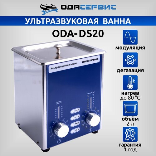 ODA-DS20 - это ультразвуковая ванна с аналоговым управлением, подогревом, с функциями дегазации (повышает КПД) и модуляции (оптимальное распределение частоты), объемом 2 литра.