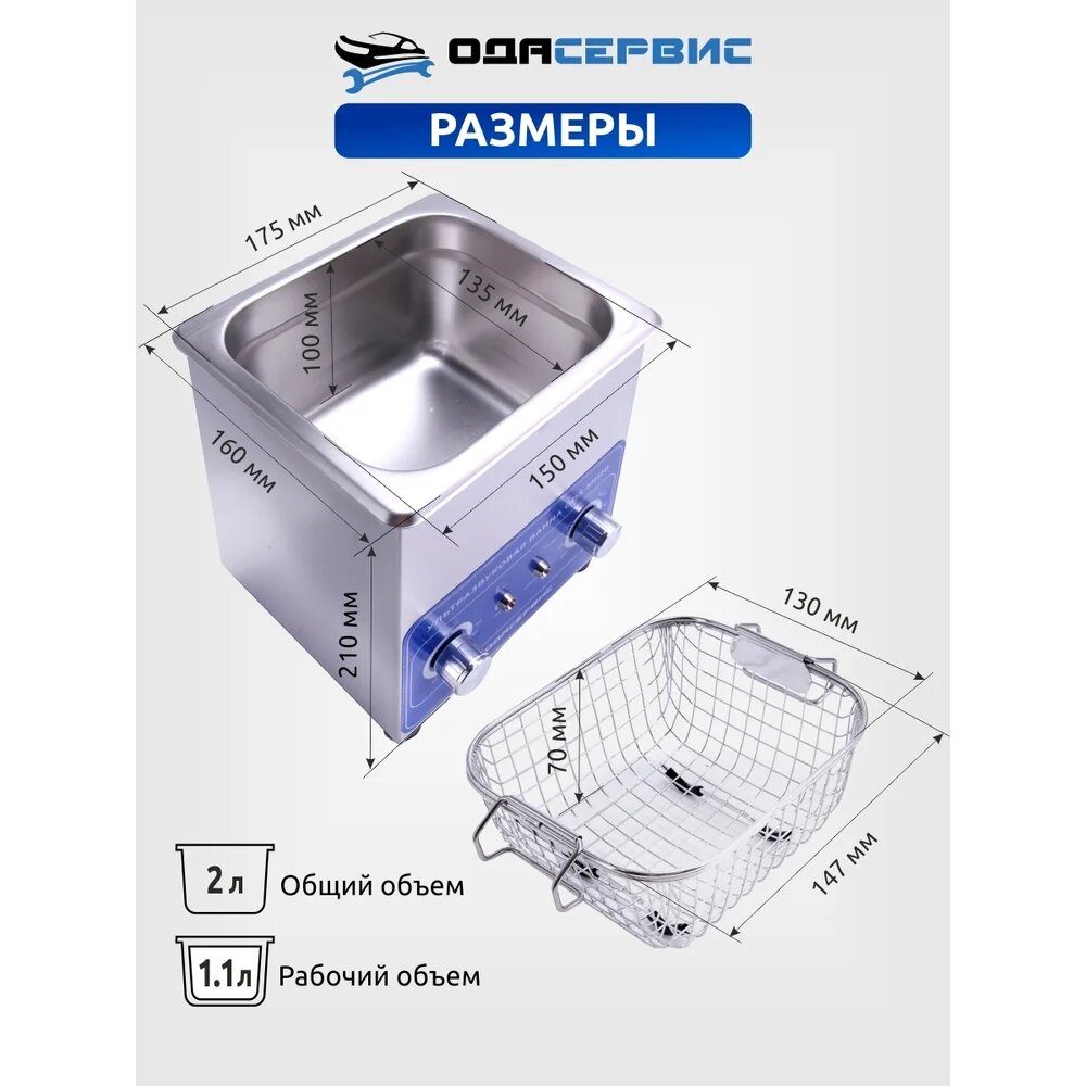 Ультразвуковая ванна с механическим таймером и подогревом, 2л ОДА Сервис ODA-MH20: сравнение цен, характеристики, фото, актуальное наличие и цены.