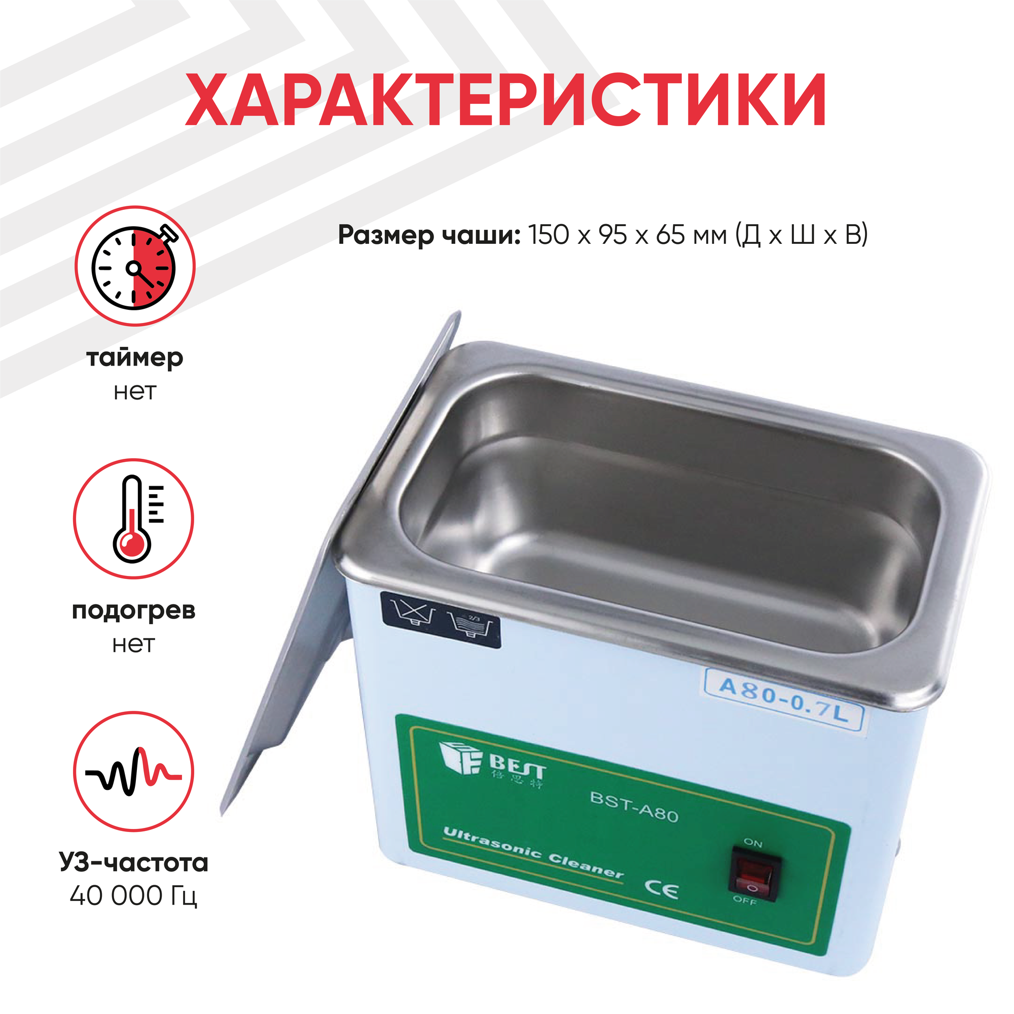 Ультразвуковая ванна Best BST-A80, 0.7 л, 50 Вт, белая: сравнение цен, характеристики, фото, актуальное наличие и цены.
