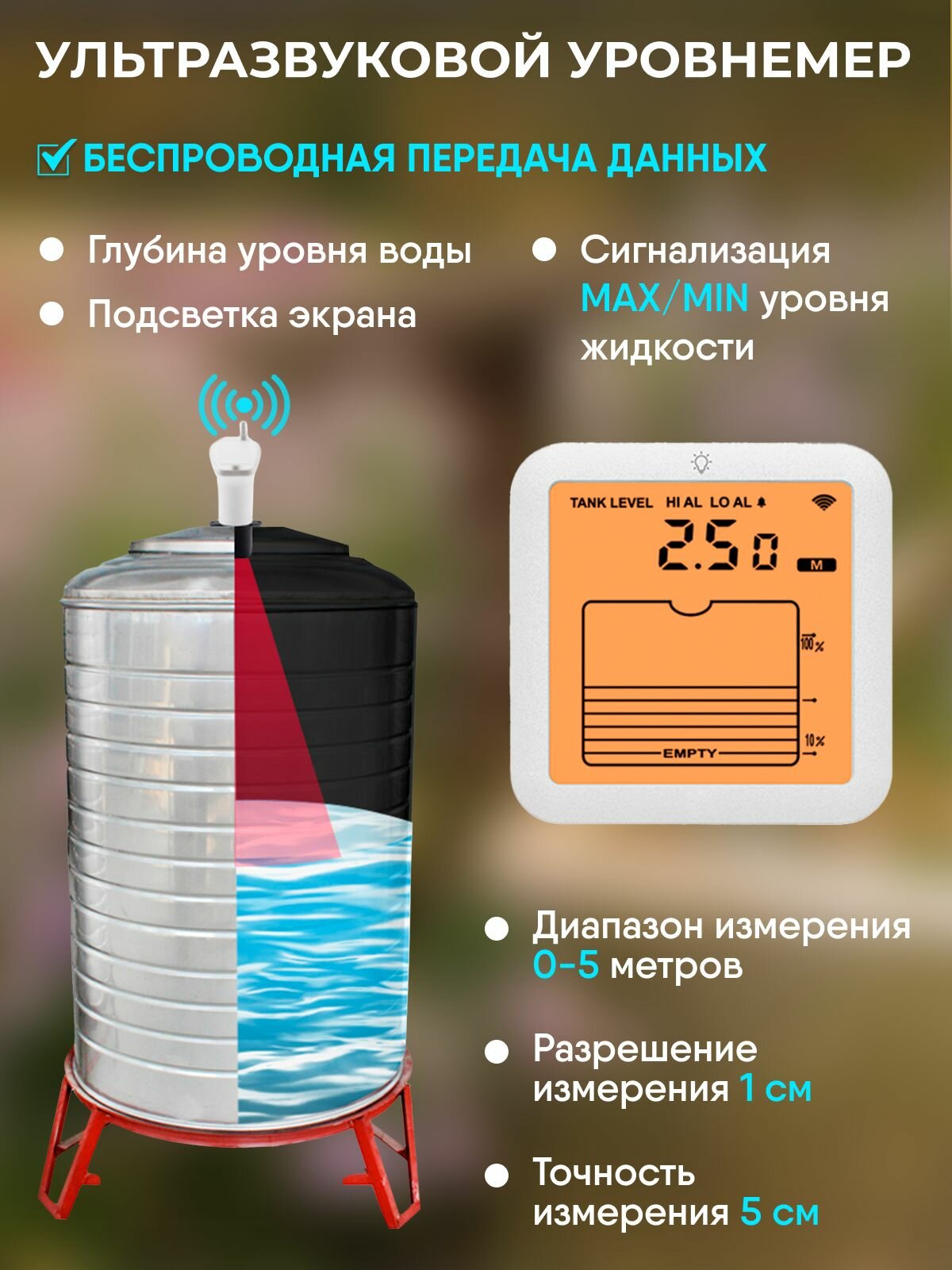 Ультразвуковой датчик SOVANCI, для жидкостей, беспроводной, ЖК-дисплей, белый: сравнение цен, характеристики, фото, актуальное наличие и цены.