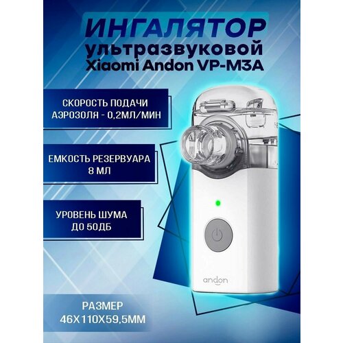 Ультразвуковой ингалятор (небулайзер) Xiaomi Andon Micro Mesh Nebulizer VP-M3A - это современное и эффективное устройство для проведения ингаляций.