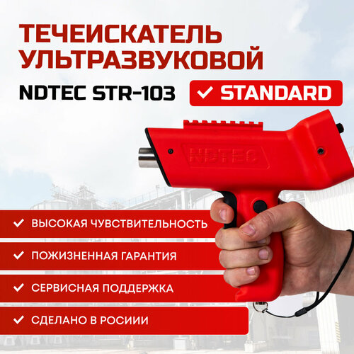 Ультразвуковой течеискатель STR-103 (детектор утечек сжатого воздуха) предназначен для обнаружения мест утечек сжатого воздуха в пневматических и вакуумных системах, при испытаниях повышенным давлением емкостей, трубопроводов, тестирования запорной арматуры, обнаружения коронных разрядов и иных дефектов, сопровождающихся появлением ультразвука. Разработан и выпускается в России, изготовитель ООО «Энергетика».