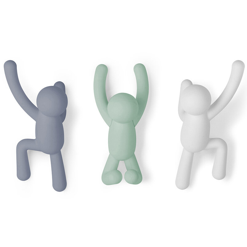Этот набор из трех настенных крючков в виде популярного персонажа Buddy от Umbra, «взбирающегося по стенам» в различных положениях. Когда крючки не используются, они служат забавным и уникальным декором для стен, который обязательно привлечет к себе внимание.