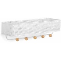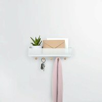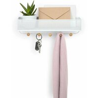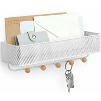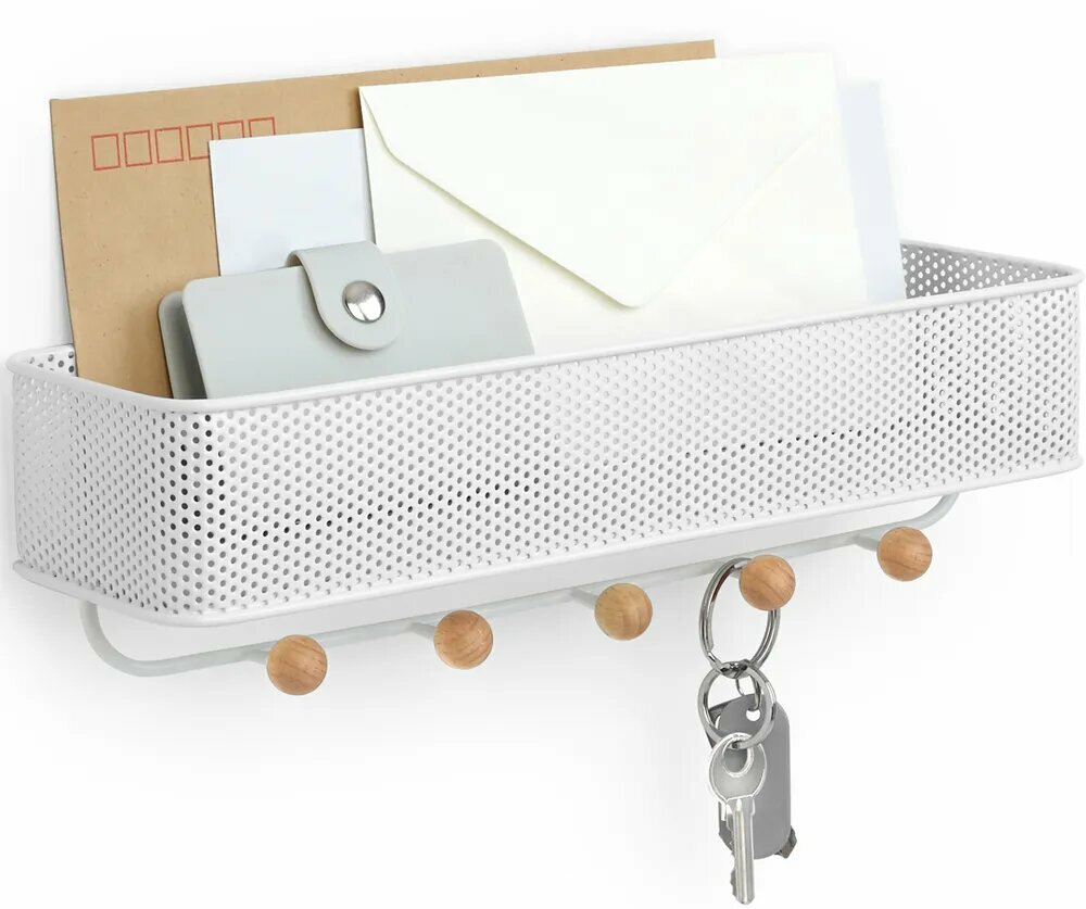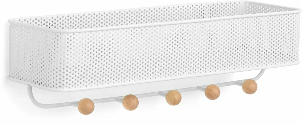 Настенный органайзер из перфорированного металла и натурального дерева. Большое отделение для хранения писем, телефонов, квитанций или портмоне – тех мелочей, которые достаются из карманов и сумок по приходу домой и норовят потерятся. Пять крючков с круглыми деревянными наконечниками для ключей и аксессуаров. Сочетается по стилю с предметами из коллекции Promenade. Дизайнер Wesley Chau