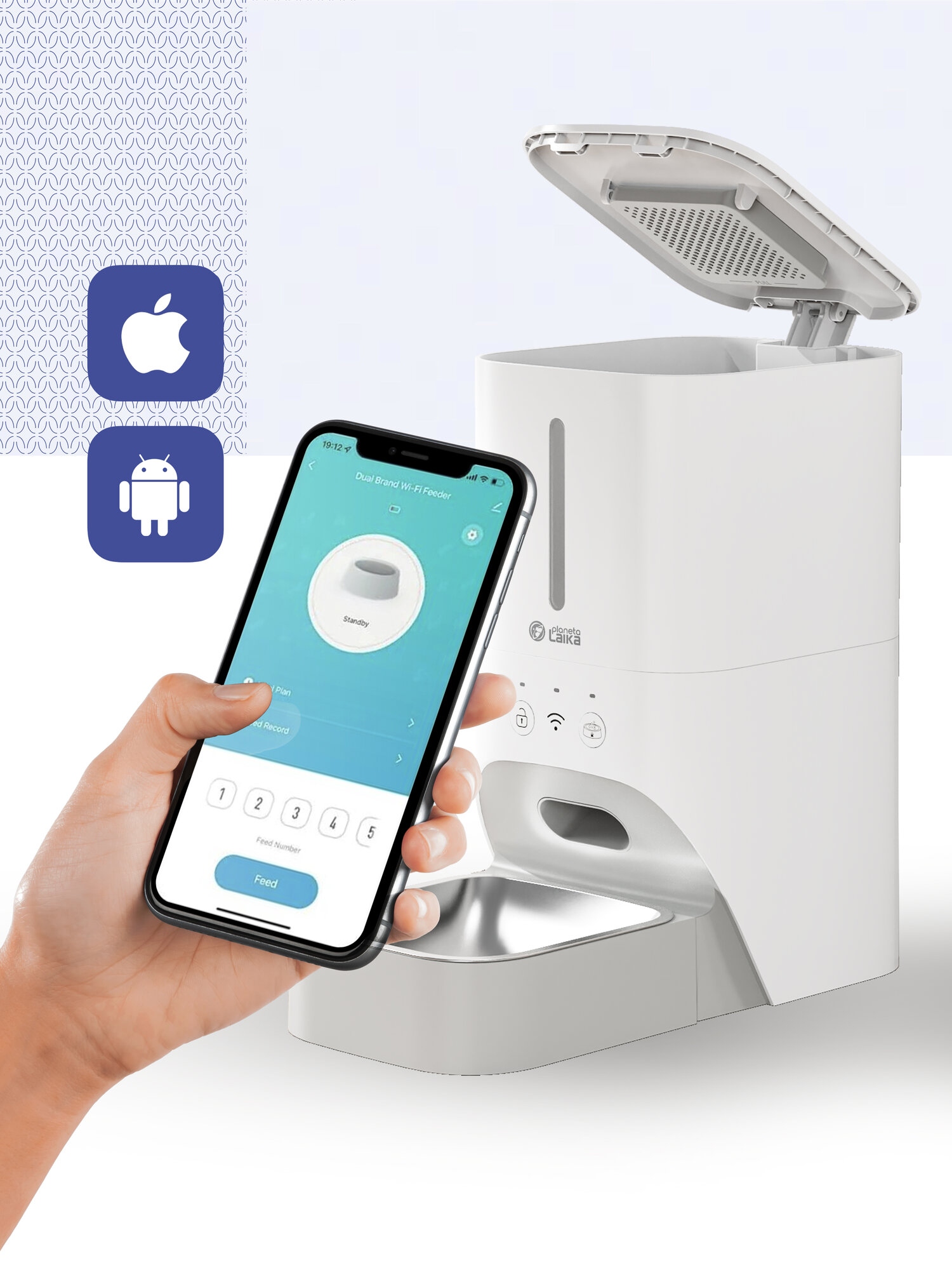 Купить Автоматическая кормушка для кошек и собак Planeta Laika с Wi-Fi, с миской из нержавеющей стали, белая с доставкой по всей России.