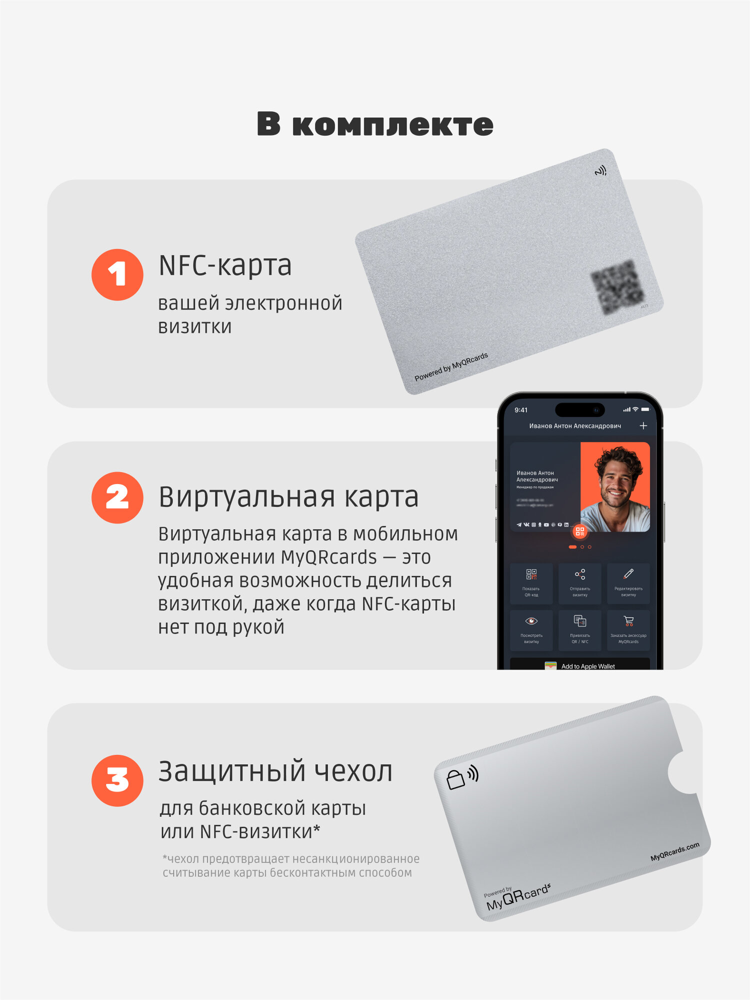 Умная электронная визитка на NFC-карте с бесплатной виртуальной картой в приложении