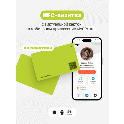 Фирменная карта MyQRcards (с электронной NFC-визиткой) -это бесконечная электронная визитка, которой можно делиться как с карты, так и из бесплатного мобильного приложения MyQRcards. Карты выполнены из материалов: металл, дерево, пластик. Вы приобретаете карту однажды и пользуетесь ей всю жизнь. Абонентской платы нет! При активации карты подключится бесплатный тариф для использования мобильного приложения MyQRcards (скачать: Google Play и App Store). Из моб. приложения вы можете редактировать данные визитки (ваши контакты, фотографии, ссылки на соцсети, ссылки на веб-сайты и многое другое) и делиться ей различными способами: через QR-код, мессенджеры, СМС или соцсети. Вашему собеседнику не требуется мобильное приложение, чтобы получить ваши контакты! На карту с электронной NFC визиткой предоставляется пожизненная гарантия. Если карта перестанет работать, мы заменим ее на новую бесплатно. Для организаций мы рекомендуем подключить корпоративный тариф, дополнительно к карте.