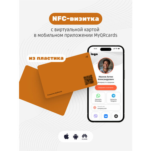 Умная электронная визитка на NFC-карте с бесплатной виртуальной картой в приложении