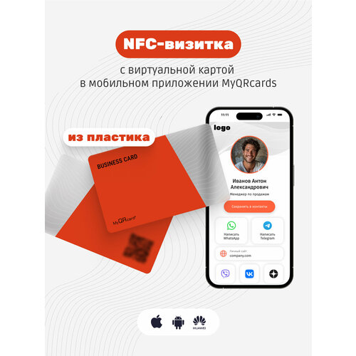 Фирменная карта MyQRcards (с электронной NFC-визиткой) -это бесконечная электронная визитка, которой можно делиться как с карты, так и из бесплатного мобильного приложения MyQRcards. Карты выполнены из материалов: металл, дерево, пластик. Вы приобретаете карту однажды и пользуетесь ей всю жизнь. Абонентской платы нет! При активации карты подключится бесплатный тариф для использования мобильного приложения MyQRcards (скачать: Google Play и App Store). Из моб. приложения вы можете редактировать данные визитки (ваши контакты, фотографии, ссылки на соцсети, ссылки на веб-сайты и многое другое) и делиться ей различными способами: через QR-код, мессенджеры, СМС или соцсети. Вашему собеседнику не требуется мобильное приложение, чтобы получить ваши контакты! На карту с электронной NFC визиткой предоставляется пожизненная гарантия. Если карта перестанет работать, мы заменим ее на новую бесплатно. Для организаций мы рекомендуем подключить корпоративный тариф, дополнительно к карте. Цветные NFC карты-визитки из полупрозрачного пластика. Компания MyQRcards - российский разработчик и производитель электронных визиток выпустила на рынок серию полупрозрачных бесконтактных NFC карт-визиток. В 2023г еще никто в мире не производит таких карт с чипом.