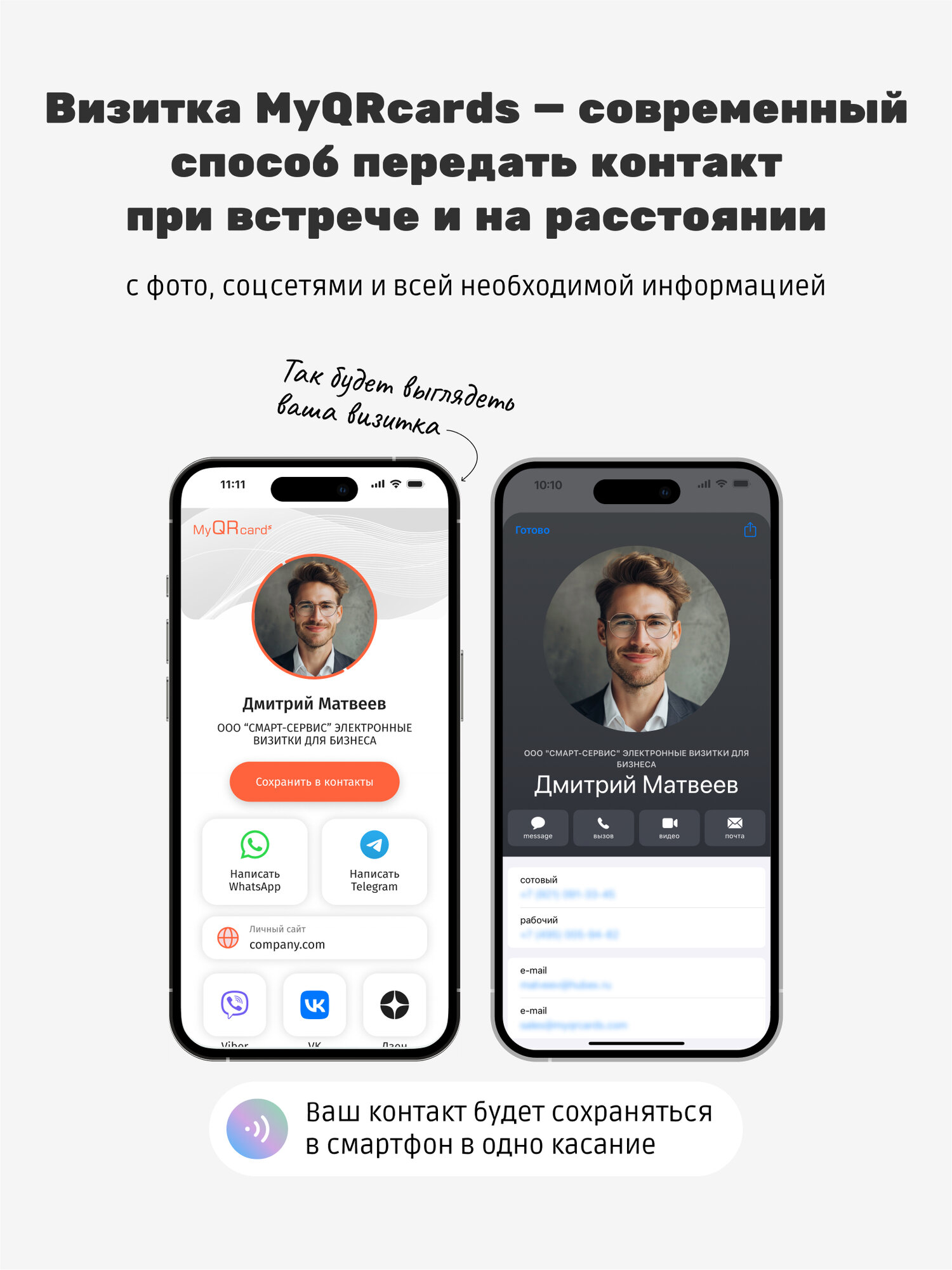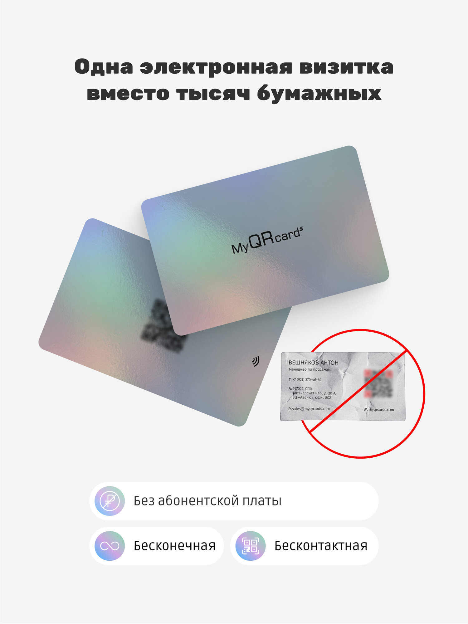 Умная электронная визитка на NFC-карте с бесплатной виртуальной картой в приложении