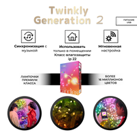 Умные декоративные светильники Twinkly Candies, выполненные в форме звезды, привносят очарование в любое жилое пространство вашего дома благодаря необычайной яркости, настраиваемым эффектам с телефона и легкой портативной конструкции. Хотите ли вы создать уютное свечение в детской комнате, создать завораживающую потоковую установку, придать праздничности или добавить индивидуальный штрих в интерьер. Создайте атмосферу с помощью Candies. Управляемая приложением световая гирлянда – легко управляйте гирляндой с помощью удобного приложения Twinkly для iOS и Android на мобильных устройствах и планшетах. Дайте волю своему творчеству – наслаждайтесь множеством готовых к воспроизведению настраиваемых эффектов и анимацией или создайте свое уникальное световое шоу. Группируйте несколько устройств Twinkly – создавайте более крупные синхронизированные украшения, комбинируя свои Twinkly Candies с другими устройствами Twinkly. Работает с Amazon Alexa и Hey Google - Управляйте без помощи рук, интегрируя Twinkly Candies с выбранными устройствами Smart home. Умный контроллер с кабелем питания USB-C в комплекте – возьмите Twinkly Candies с собой куда угодно, благодаря их легкому портативному дизайну. Синхронизация музыки с помощью Twinkly Music Dongle (приобретается отдельно). Длина 6 метров. Расстояние между лампами - 6 см.