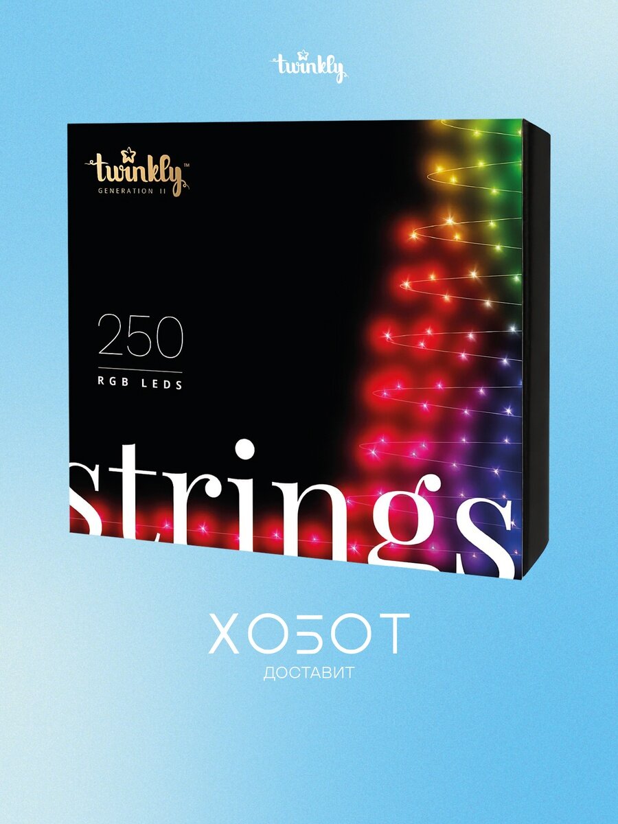 Электрогирлянда Twinkly Strings, 250 диодов RGB, длина 20 метров, разноцветная, черный провод, адресные диоды: сравнение цен, характеристики, фото, актуальное наличие и цены.