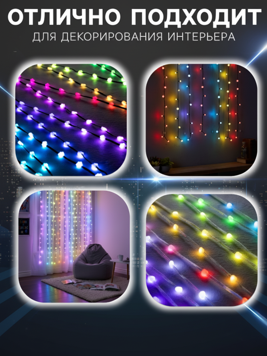 Купить Умная гирлянда звездочки RGB с управлением через смартфон, пульт ДУ, 7 метров с доставкой по всей России. Умная гирлянда звездочки RGB с управлением через смартфон, пульт ДУ, 7 метров: сравнение цен, характеристики, фото, актуальное наличие и цены.