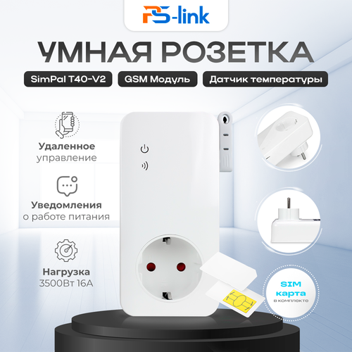 Умная GSM розетка с сим-картой Simpal T40-SIM с модулем и датчиком температуры