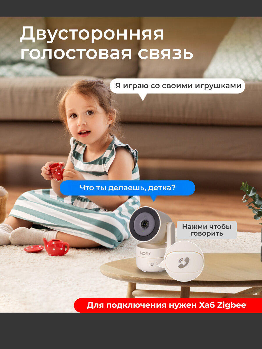 Купить Умная камера MOES WCM-P52-MS / панорамный обзор 360°, ночное видение, двусторонняя связь, 4Мп, Wi-Fi, бежевый с доставкой по всей России.