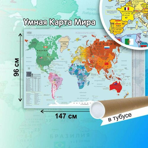 Политическая Умная Карта Мира на стену. Карта предназначена для детей и взрослых.