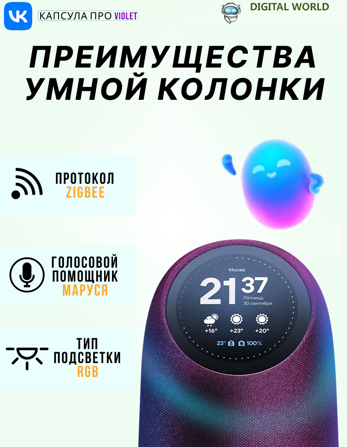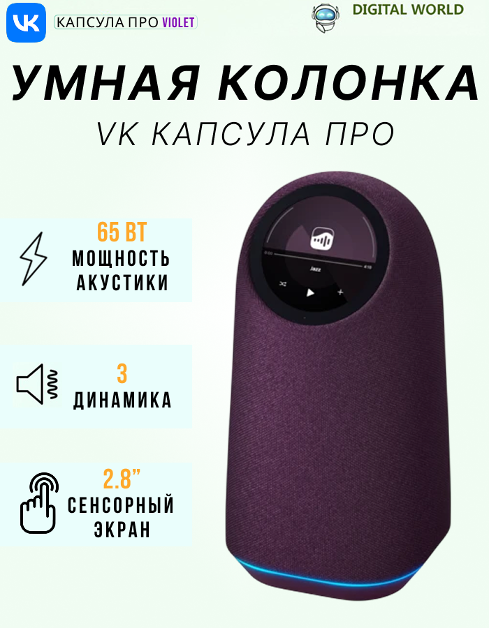 Купить Умная колонка VK Капсула Про фиолетовый с доставкой по всей России. Умная колонка VK Капсула Про фиолетовый: сравнение цен, характеристики, фото, актуальное наличие и цены.